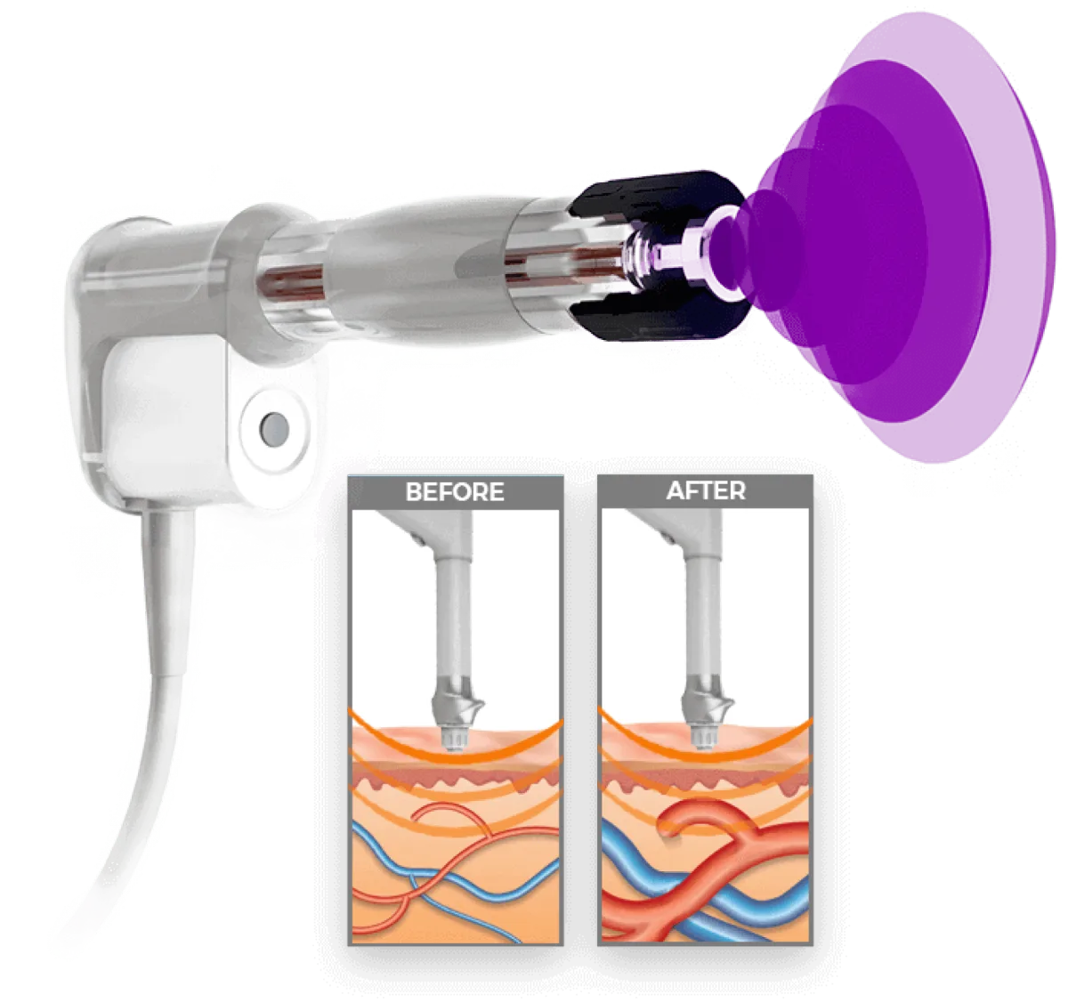 The pulsating acoustic shockwaves stimulates the growth of new blood vessels in the penis to increase blood flow and, in turn, enhance sexual function.